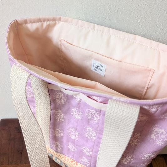 Quilted Two-Tone Tote Bag - Lilac Stamp